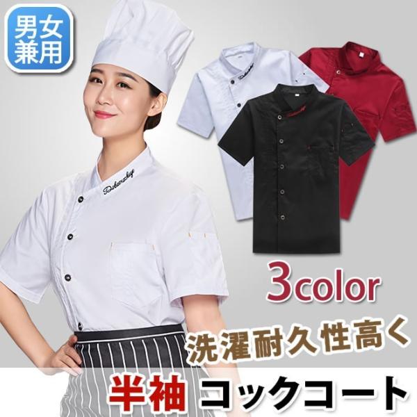 コックシャツ 半袖 通気 男女兼用 白衣 コックコート ユニフォーム